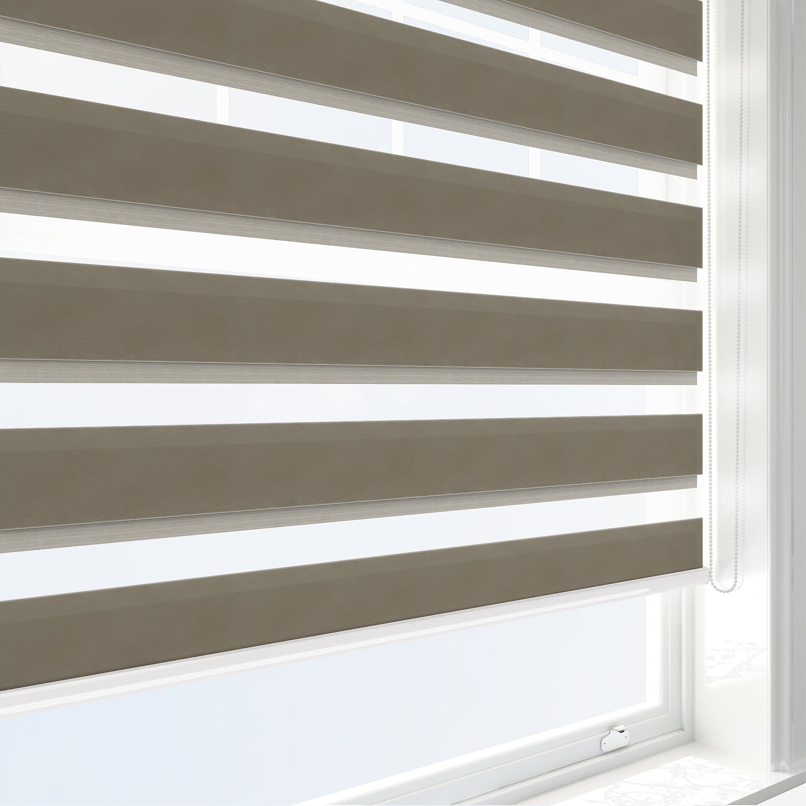 Estores Noite e Dia combinam duas telas alternadas — translúcidas e opacas — que permitem controlar com precisão a entrada de luz e a privacidade. Uma solução funcional e elegante para espaços residenciais e profissionais.